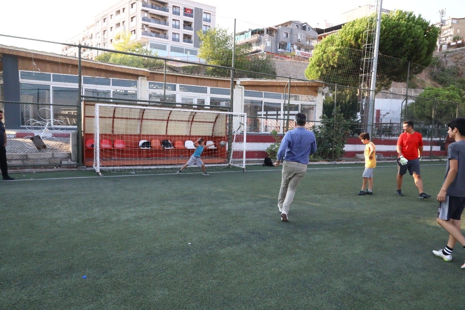 Şehit Ümit Boz Sosyal Tesisleri içerisinde yer alan düğün salonunun da kısa zamanda hizmete gireceği müjdesini veren Serdar Sandal, spor tesisindeki çocuk ve gençlerle bir süre sohbet edip futbol oynadı. Başkan Sandal, "Bayraklı'yı çocuk ve gençlik kenti yapacağız demiştik. Gençlerimizin daha sağlıklı koşullarda spor yapmaları için yatırım planlarımız içerisinde olan halı saha zeminini de yeniliyoruz" dedi. Ziyaret boyunca vatandaşların dilek ve taleplerini dinleyen Başkan Sandal, "Kentsel dönüşüm, belediye hizmetlerimiz ve sağlıklı bir kent planlaması için temel gündemimiz. Gerek bakanlık düzeyinde gerekse de büyükşehir bünyesinde temaslarımız ve çalışmalarımız devam ediyor. 24 mahallemizdeki çalışmalarımız ise eş zamanlı sürüyor. Muhtarlıklarımız ve büyükşehir belediyemizle kurduğumuz koordinasyon sayesinde temizlikten sokak iyileştirmelerine; yol yapım çalışmalarından yeni parklar ve sosyal tesislerin yapımına kadar birçok alanda hızlı sonuçlar alıyoruz. Bayraklı'daki değişim gün geçtikçe hissediliyor, daha çağdaş, daha yaşanılabilir bir Bayraklı hedefiyle tüm mesai arkadaşlarımızla gece gündüz demeden çalışıyoruz" diye konuştu. Alpaslan Mahalle Muhtarı Fahri Karatay ise, "Yollarımız asfaltlandı, kilit parkelerimiz döşendi, muhtarlık binamız yenilendi, parkımız yenileniyor, kreş talebimiz de umarım gerçekleşecek. Serdar Başkanımdan mahallemize olan hizmetlerinden dolayı çok memnunuz, kendisine bir kez daha teşekkür ediyorum" dedi. Ziyareti sırasında esnaf ve vatandaşlar tarafından büyük bir memnuniyetle karşılanan Başkan Sandal, programı boyunca gençlerle, çocuklarla ve esnafla bol bol hatıra fotoğrafı çektirdi.
