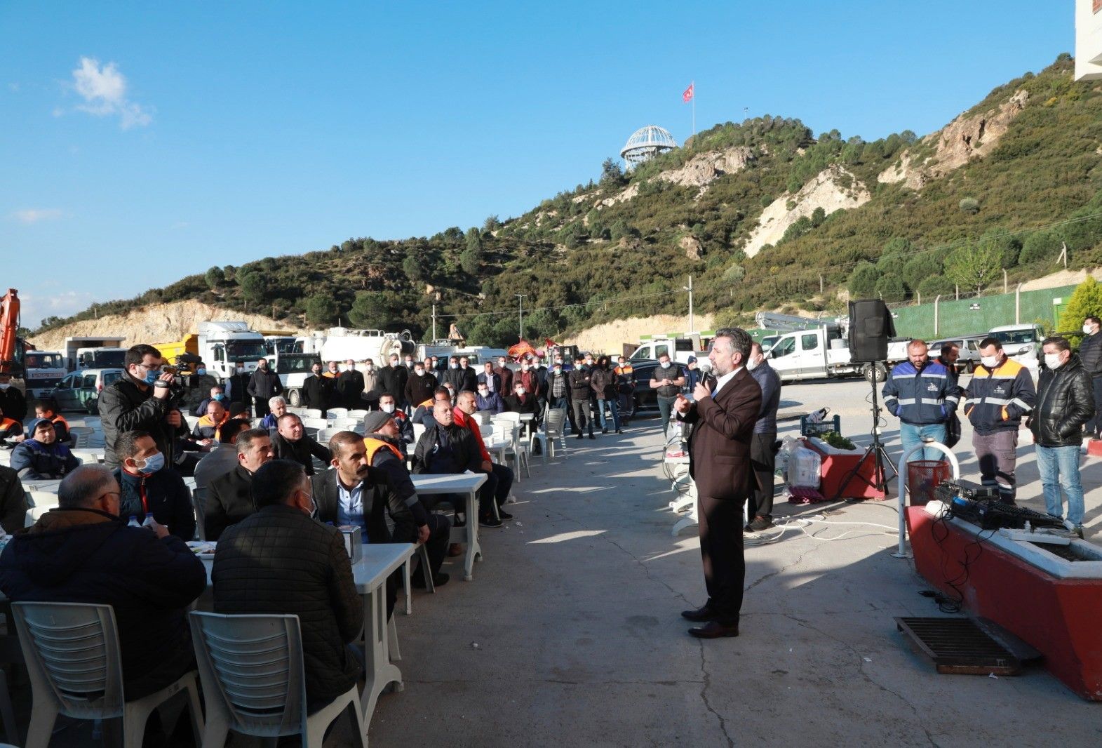 Başkan Sandal, "Sizin maaşlarınızı ben vermiyorum. Emeğinizin karşılığını ödeyen Bayraklılı vatandaşlarımız. Biz kendi cebimizden kimseye bir şey vermiyoruz. Bir minnetiniz, bir vefanız, sadakatiniz varsa Bayraklı'da yaşayan vergisini ödeyen vatandaşlara minnet borcunuz var. O yüzden işimizi yaparken duruma bu açıdan bakacağız. İşimizden kaytarmayacağız, bu ahlak çerçevesinde işimizi doğru yapacağız, hak etmediğimiz bir şeyi istemeyeceğiz. Çalışan kazanacak. Olmayan işin mesaisi olmaz. İşe gelmeyen sekretere, şoföre, bayramda kadrolu işçiye mesai yazılmaz. Çünkü bu fakir, fukaranın hakkı ve bize düşen görev bu hakkı hak eden o insanlara götürüp geri vermektir. Vatandaşımızdan nasıl vergi topluyorsak, kimseyi ötekileştirmeden, ayrım yapmadan sadece hizmet edeceğiz" dedi.