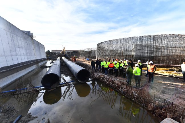 İzmir Büyükşehir Belediye Başkanı Tunç Soyer, “Yaşayan Körfez” programı kapsamında İZSU Genel Müdürlüğü tarafından yapımına başlanan Çiğli İleri Biyolojik Atık Su Arıtma Tesisi’nin 4. fazının inşaatını yerinde inceledi. Başkan Tunç Soyer’e İZSU Genel Müdürü Ali Hıdır Köseoğlu eşlik etti.