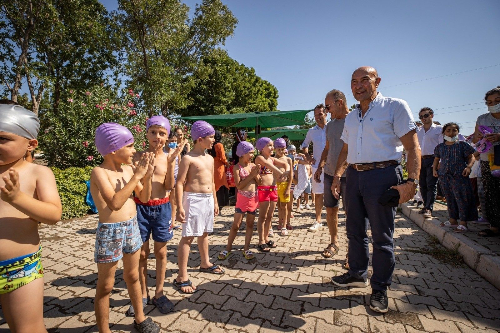 Yüzmeyi, denizi ve havuzu bilmeyen çocuklar için çalışmaya devam edeceklerini ifade eden İzmir Büyükşehir Belediye Başkanı Tunç Soyer, "İzmir'in bu sıcağında onları yüzme sporu ile buluşturmak çok keyifli, çok memnunum. Onlara eşlik etmekten de mutluluk duyuyorum. Havuzu bilmeyen, İzmir'de yaşayıp da denizi görmemiş çok çocuğumuz var. Onları yüzme sporuyla da, havuzla da, denizle de buluşturacağız. 2 ayda 3 bin çocuğumuz yüzme öğrenecek. 6 yaşından itibaren başlatıyoruz. Günün her saati havuzlarımızda çocuklarımız yüzme eğitimi alıyor" diye konuştu.