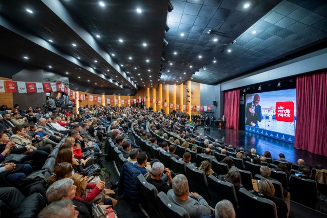 2019 yılında başkan adayıyken vaat ettiği projelerin bir çoğunu tamamladığını söyleyen Başkan Soyer, “Beni bu makama taşıyan ve yüzde 58’lik bir oyla seçilmemi sağlayan seçim beyannamemde 165 proje vaat etmişim. Seçim vaatlerini bu kadar şeffaf bir şekilde masaya yatıran ikinci bir belediye başkanı yok. Paralı trollerin ve bazı hizipçilerin oluşturduğu algılar biz de yok. Burada sadece olgular ve gerçekler var. 165 vaadim olmuş, 144’ünü tamamlamışız. 14’ünü kısmen tamamlamışız. Yedisini de büyük oranda hükümetin taş koyması nedeniyle yapamamışız. Buna karşılık 15 ilave projeye başlamışız ve tamamlamışız. Siyaset bir bayrak yarışıdır. Siyaset bir ekip işidir. Siyaset kişilerin değil, değerlerin ve hedeflerin yarıştığı bir meydandır. Siyasetin yegane sathı sine-i millettir. Onu kapalı kapıların ardından, menfaat çetelerinin ve popülizmin elinden kurtaracak tek bir güç var. O da biziz, Cumhuriyet Halk Partisi... Bu zorlu yolda en çok siz yoldaşlarıma güveniyorum. Bu ülkede içinde güvenle yaşanan şehirleri ancak biz inşa edebiliriz. Refahın büyümesini ve adil paylaşımını ancak biz sağlayabiliriz. Demokrasiyi yerelde ve tüm Türkiye’de en güçlü şekilde bizler yüceltebiliriz" dedi.