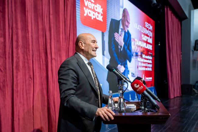 İzmir Büyükşehir Belediye Başkanı Tunç Soyer, Kültürpark İsmet İnönü Sanat Merkezi'nde, Cumhuriyet Halk Partisi İzmir İl Başkanlığı tarafından düzenlenen 4,5 yıl sunumunu gerçekleştirdi. CHP'li ilçe başkanları ve yardımcılarının da yer aldığı programda, açılış konuşmasını CHP İzmir İl Başkanı Şenol Aslanoğlu gerçekleştirdi.