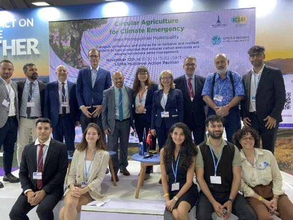 Konferansa ICLEI ortaklığında katılan İzmir Büyükşehir Belediyesi, ICLEI'nin Yerel Yönetimler ve Belediyeler-LGMA Çok Düzeyli Eylem Pavyonu'nda 'İklim Acil Durumu için Döngüsel Tarım' başlıklı bir panel düzenledi. Moderatörlüğünü ICLEI Küresel Savunuculuk Direktörü Yunus Arıkan'ın yaptığı panelde konuşan Başkan Tunç Soyer, "Gezegenimizle uyumlu bir yaşam stratejisi elde etmek için yeni ilke ve yaklaşımlara ihtiyacımız var" diyerek Büyükşehir Belediyesi'nin yaklaşımı olan döngüsel kültür kavramından söz etti. Soyer, "Tek başına hareket etmek asla yeterli değildir. Eylemlerimiz arasındaki uyum, doğa ile uyum kadar önemlidir" diyerek birlik içerisinde olmanın ve harekete geçmenin zamanı olduğunun altını çizdi. Soyer sözlerini şöyle tamamladı: