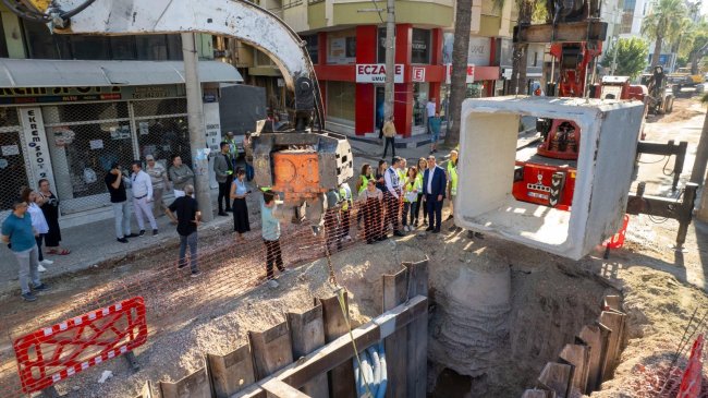 Özmen Caddesi’nde devam eden yağmur suyu ve atık su ayrıştırma projesinin Buca’da yaşanabilecek su baskınlarını önleyeceğini ifade eden İzmir Büyükşehir Belediye Başkanı Dr. Cemil Tugay, “Ekiplerimiz şu ana kadar 11 kilometrelik yağmur suyu, 7 kilometrelik atık su, Kozağaç deresinde de 1.6 kilometrelik dere ıslah imalatlarını tamamladı. Arkadaşlarımız olabildiğince hızlı bir şekilde çalışmalarını sürdürüyor. Büyük bir iş. Buca’da geçmiş dönemde bizi üzen su baskınlarının önüne geçeceğiz. Bu dönem İzmir’in altyapısıyla ilgili sorunlara etkili müdahaleler yapacağız. Emeği geçen herkese çok teşekkür ederiz” dedi.