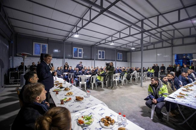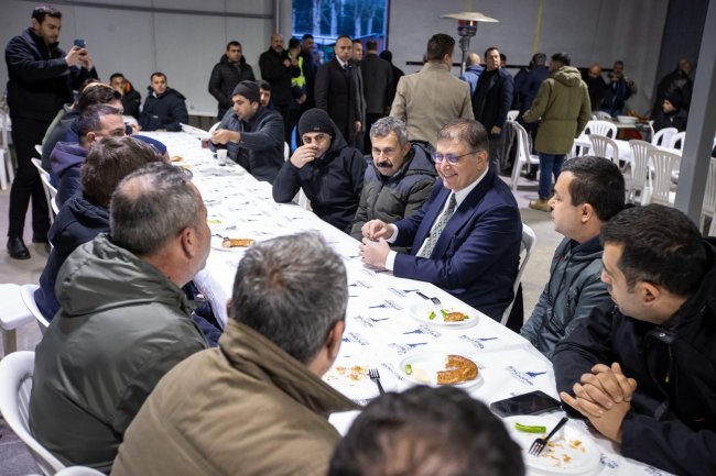Başkan Tugay şantiyede Büyükşehir Belediyesi emekçileriyle buluştu