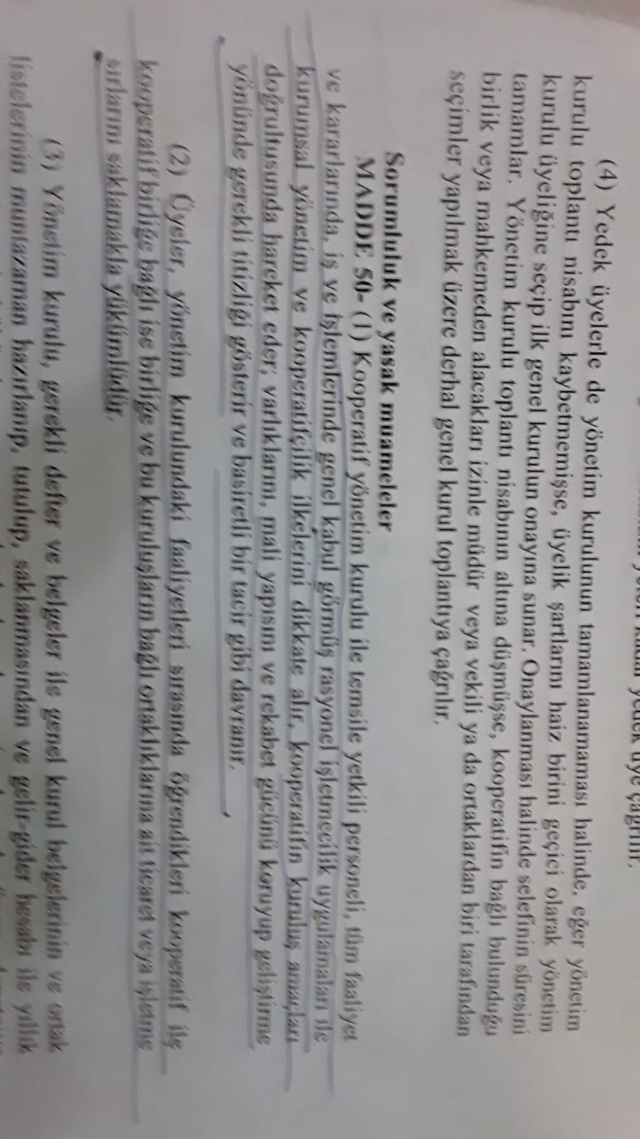 Birliğinizin 979 nolu Altınova Tariş Zeytin ve Zeytinyağı Kooperatifi üyesiyim. Bu kooperatifinizde görev yapan yönetim kurulu üyesi Mehmet Evren ve Talat Tatar birlik ana sözleşmesinin 44. madde ç bendine göre yasak olan işlemleri yaptığı tarafımca tespit edilmiştir.