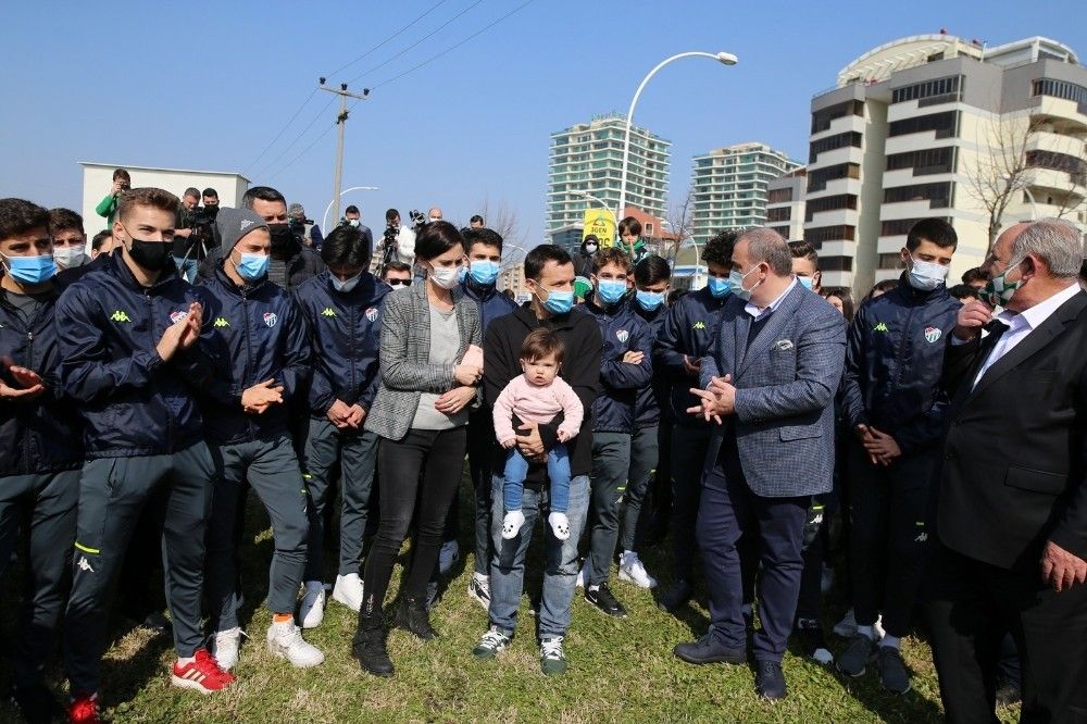 Bursaspor'un efsane ismi Pablo Martin Batalla ise açılış töreni öncesi yaptığı konuşmada, "Buraya gelen herkese teşekkür ederim. Özellikle genç futbolcular, Mustafa Hocama, Hakan Dinçtürk'e ve Rıdvan beye teşekkür ediyorum. Heykelin burada olması beni çok mutlu etti. Böyle büyük bir eseri hak etmediğimi düşünüyorum. Ama gururlu olduğumu inkar edemem. Bu tesis rahmetli başkanımızın adını taşıyan tesis. Kariyerimin en önemli ve değerli zamanını geçirdiğim tesis. Eşimle biz bu kulübe ve bu şehre her zaman minnettarız" dedi.