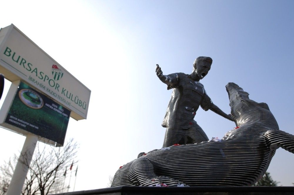 TFF 1. Lig ekiplerinden Bursaspor'un, Süper Lig şampiyonluğunda büyük pay sahibi olan ve camianın efsaneleri arasına giren Arjantinli futbolcu Pablo Martin Batalla'nın kulüp tesisi önündeki heykelinin açılışı gerçekleşti. Bursaspor Kulübü'nün eski yöneticisi avukat Hakan Dinçtürk'ün projesini üstlendiği, sanatçı Rıdvan Sevim ve endüstriyel tasarımcı Oktay Türkoğlu'nun çalışmalarıyla yapımı tamamlanan Batalla'nın heykeli, Özlüce İbrahim Yazıcı Tesisleri'nin ana girişine konuldu. Kulübün kuruluş yılına atfen 1963 parça olarak tasarlanan heykelde bin 200 kilogram paslanmaz çelik kullanıldı.
