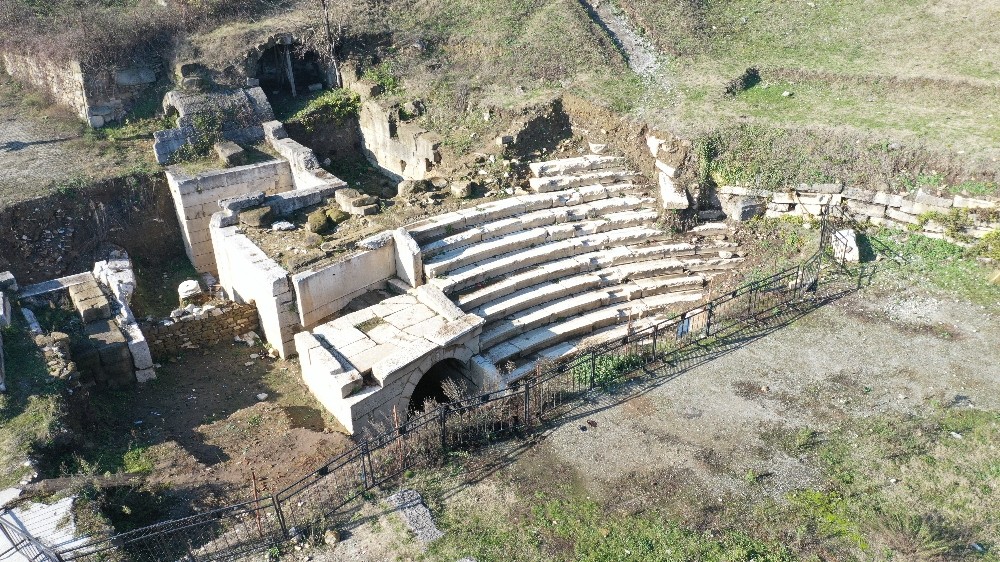DÜZCE(İHA) – (Özel) Düzce ili sınırları içinde bulunan ve tespit edilen tarihi M.Ö. 3. yüzyıla kadar uzayan Konuralp Prusias ad Hypium antik kenti kalıntıların gün yüzüne çıkartılması için çalışmalar başladı. Tarihi kalıntıların kazı çalışmaları ile ilgili bilgiler veren Düzce Belediye Başkanı Dr. Faruk Özlü, Türkiye'de ilk kez arkeologlar ve gönüllüler ile birlikte bir kazı çalışması yapacağını belirterek "Burası Batı Karadeniz'in Efes'i olacak" dedi.