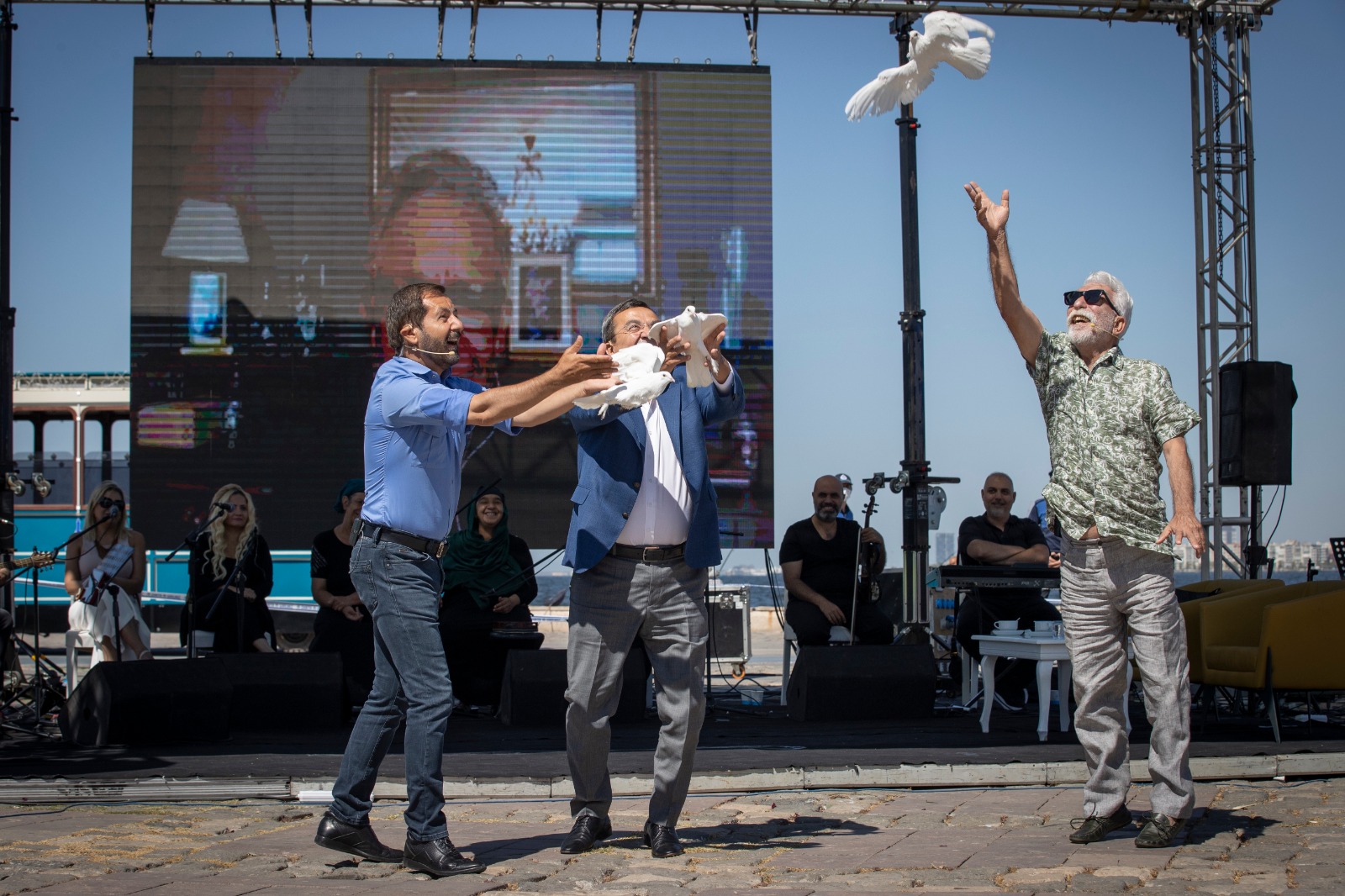 Adı her zaman barışla birlikte anılan Mikis Theodorakis’in de anıldığı programda Başkan Batur, Theodorakis’in barışa çok büyük katkısı olduğunu söyledi ve annesi Çeşmeli olan sanatçının İzmir’de bir hatırası olmasından mutlu olduklarını dile getirdi. Zülfü Livaneli’nin de yayına bağlanarak hatıralarını aktardığı yayın sırasında Konak Belediye Başkanı Abdül Batur, sunucu Serhan Asker ve sanatçı Cezmi Baskın, hem Theodorakis’in ülkesi Yunanistan ile Türkiye barışı hem de dünya barışı için beyaz güvercinleri gökyüzüne uçurdu.