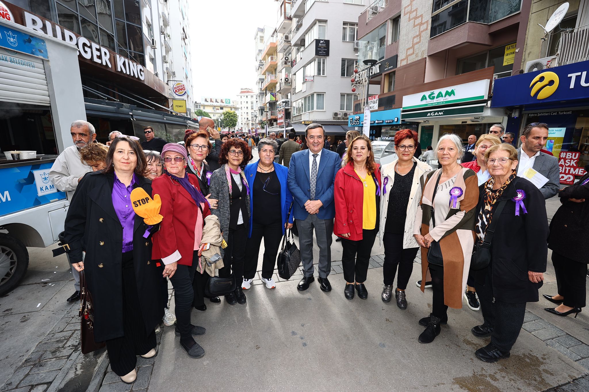 Konak Belediye Başkanı Abdül Batur, kadınların mücadelesinde yanlarında olmaya devam edeceklerinin altını çizerek konuşmasını şu sözlerle sürdürdü: