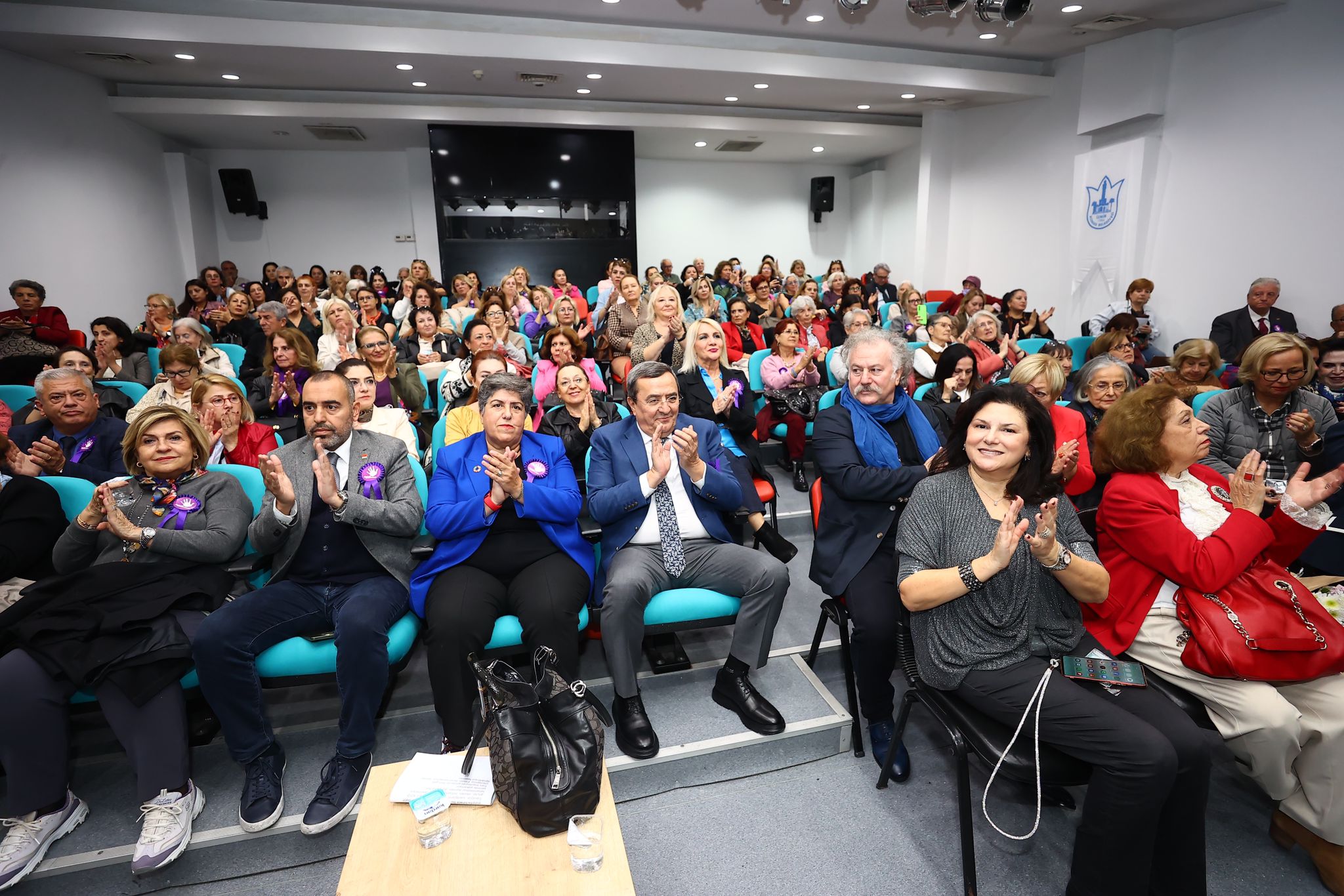 Başkan Batur, Konak Belediyesi olarak kadın sivil toplum kuruluşlarıyla ve kadın muhtarlarla dayanışma içinde çalışarak, kadının adını öne çıkarmaya gayret ettiklerini belirtti ve şunları söyledi:
