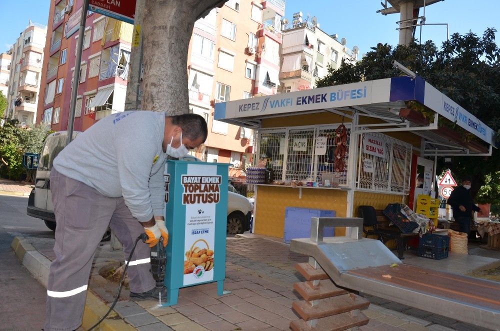 Antalya'da Kepez Belediyesi, ilçedeki 134 noktaya kazandırmayı planladığı 'Bayat Ekmek Toplama Kutuları'nı ilçenin dört bir köşesine monte etmeye başladı