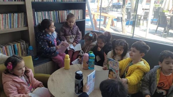 İZMİR'in Bayraklı ilçesindeki Bayraklı Belediyesi Ayda Bebek Anaokulu öğrencileri, Değirmen Kafe içindeki Kitap Kafe'yi ziyaret etti. 3-6 yaş arasındaki 30 öğrenci, kütüphane ve kitap okumanın önemi konusunda bilgilendirildi. Başkan Serdar Sandal, "Bayraklı Eğitim Modelimiz ile öğrencilerimiz derslerini yerinde ve deneyimleyerek öğreniyor" dedi.
