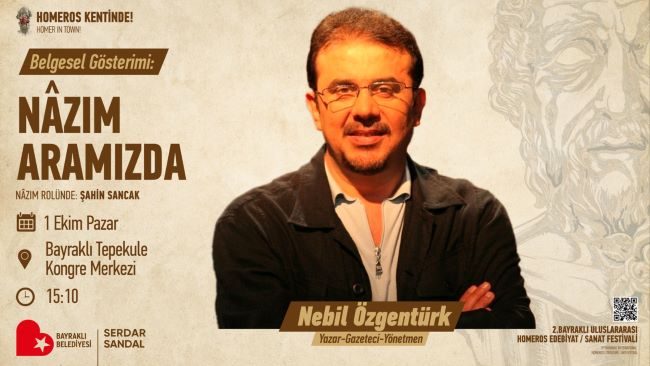 Tepekule Kongre Merkezi’nde gerçekleşecek 1 Ekim Pazar günkü etkinlikler ise 11:00’da Adasu Akın’ın mini konseriyle başlayacak. Törende Homeros ödülleri sahiplerini bulacak. 15:10’da Nebil Özgentürk’ün ‘Nazım Aramızda’ belgeselinin gösterimi yapılacak. Festivalin finali de 20:30’da Bayraklı sahilinde gerçekleşecek Kardeş Türküler konseriyle taçlanacak. Tüm etkinliklere katılım ücretsiz olacak.