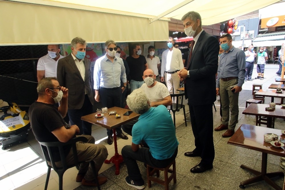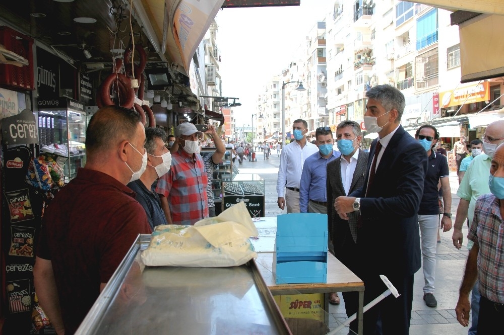 Bayraklı Kaymakamı Karaboran ise, "Toplum sağlığı için lütfen sıfır taviz gösterelim. Maskesiz vatandaşlarımızı uyaralım. Tüm iş yerlerimizde, toplu kullanım alanlarında mesafemizi koruyalım, maskemizi de takmayı ihmal etmeyelim. Sağlık Bakanlığımızın açıkladığı tüm tedbirleri sabırla uygulamamız lazım. Uyarıları dikkate almamız lazım. 'Bana bir şey olmaz' demeyin. Bana bir şey olmazsa, karşımızdakine de bir şey olmaz diye düşünelim ve lütfen kurallara uyalım" dedi.