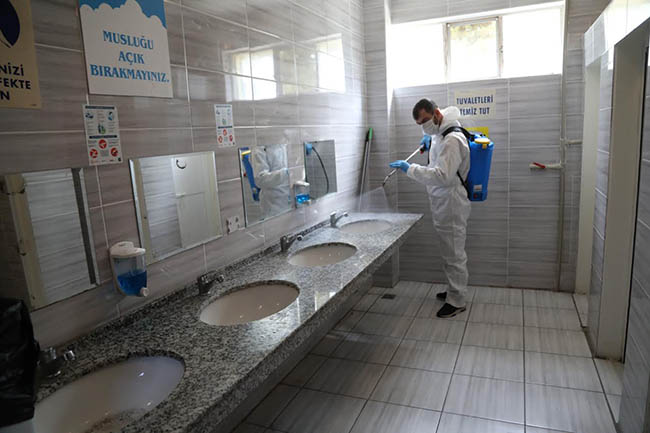 Bayraklı Belediyesi, sömestir tatiliyle birlikte, ilçe genelindeki tüm okullarda ilaçlama ve dezenfeksiyon çalışması başlattı. Çevre Koruma ve Kontrol Müdürlüğü’nce sürdürülen çalışmalar kapsamında tüm okullara giren ekipler, öğrencilerin ortak kullanım alanlarını baştan sona temizledi. Sınıflar, koridorlar, tuvaletler, kantinler ve bahçe alanları ilaçlanarak dezenfekte edildi. Pandeminin başlangıç sürecinden bu yana periyodik olarak devam eden uygulama öğrenciler ve aileler tarafından da memnuniyetle karşılandı.