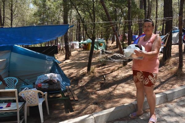 25 yıldır çadır tatili yaptığını söyleyen Pakize Saykan (59) ise "Çadır alanında yaşamak çok güzel. Eşyalarımı çadırın içerisinde bırakıp gitsem bile bugüne kadar bir hırsızlık olayıyla karşılaşmadım. Hatta bileziklerimi toprağın altına sakladım. Evimde bu kadar rahat değilim. Çam havası bana yetiyor. 25 yıldır kamplara geliyor, her yıl 2 ay kalıyorum. İmkanım olsa bu süreyi uzatırım. Ama çocuklar okula gidiyor. Torunlarım var. Çocuklarım ve misafirlerim gelince 8 kişiye kadar kalabiliyoruz" dedi.