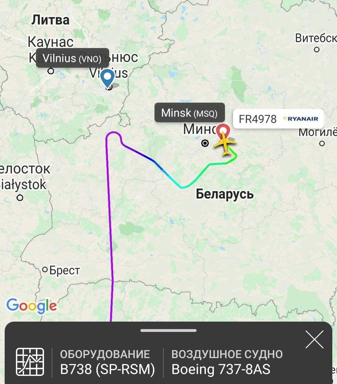 Yunanistan'ın başkenti Atina'dan Litvanya'nın başkenti Vilnius'a giden ve içerisinde 123 yolcusu bulunan Ryanair'e ait yolcu uçağı Belarus üzerinden transit geçerken başkent Minsk'e zorla inişi yaptırıldı. Belarus Hava Kuvvetlerine ait MiG-29 tipi savaş uçağının eşlik ettiği yolcu uçağının havaalanına inmesinin ardından yolcular özel kuvvetler tarafından uçakta indirilerek güvenlik taramasından geçirildi.