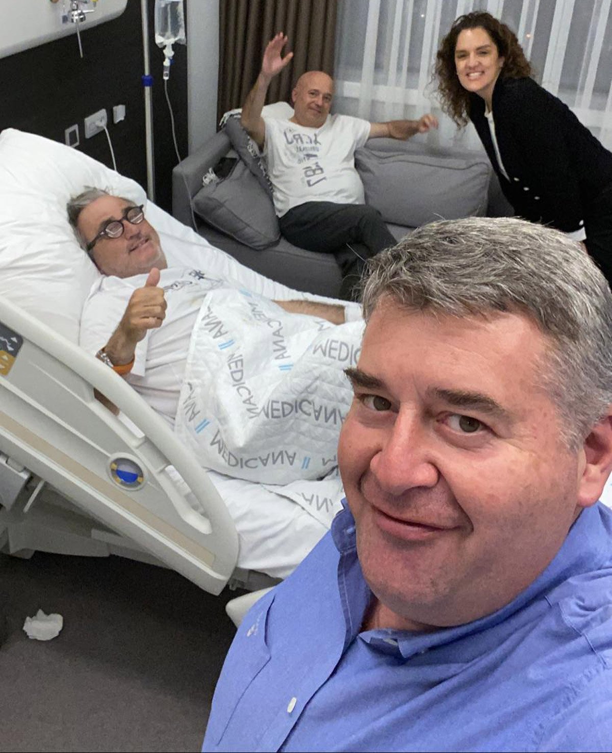 Çeşme Belediye Başkanı Ekrem Oran (önde) ve eşi Nuriş, ameliyat sonrası Korcan Karar'a geçmiş olsun ziyaretinde.