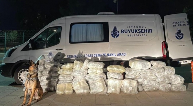 Adana'da İstanbul Büyükşehir Belediyesi'ne ait cenaze nakil aracında 24'ü esrar tozu olmak üzere 144 kg esrar yakalandı. Otoyolda durdurulan cenaze nakil aracında onlarca kilogram uyuşturucu ele geçirildi.
