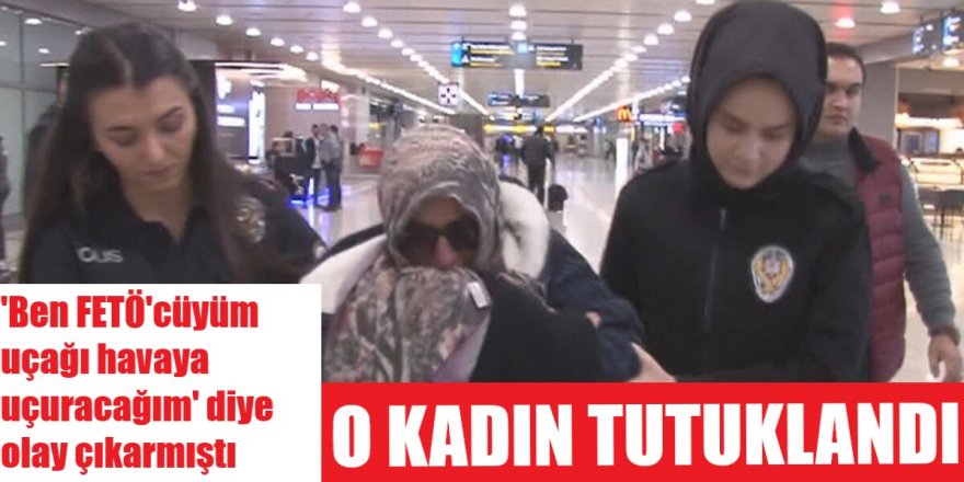 Sabiha Gökçen Havalimanı'ndan Kıbrıs'a gitmek için kalkış hazırlıkları yapan uçakta "Ben FETÖ'cüyüm ve uçağı patlatacağım" diye bağırarak olay çıkaran Nigar D., çıkarıldığı mahkemece "hava ulaşım araçlarını kaçırma veya alıkoyma" suçundan tutuklandı.