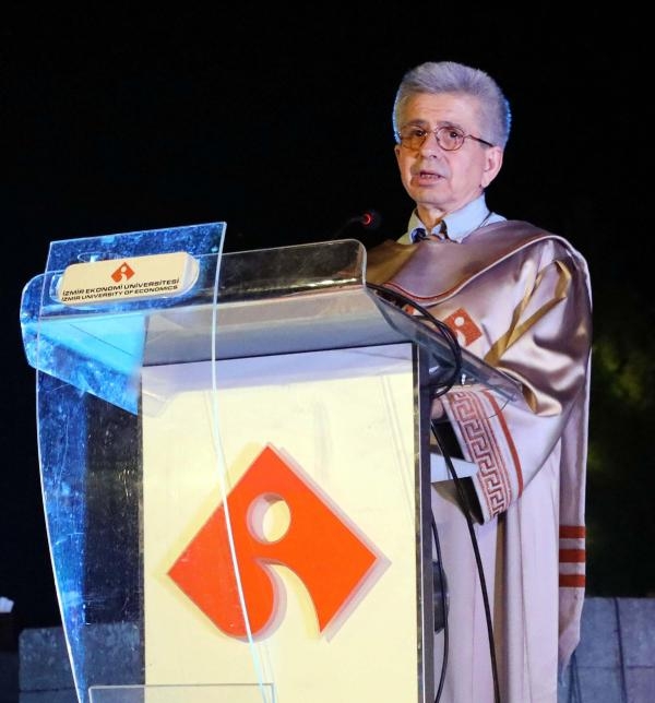 İEÜ Rektörü Prof. Dr. Yusuf Hakan Abacıoğlu ise mezunlarına çok güvendiklerini belirterek, "18 Eylül 2017'de, Tıp Fakültemizin açılış töreninde yaptığım konuşmaya, 'Bugün özel bir gün. İzmir Ekonomi Üniversitesi Tıp Fakültesi bugün doğuyor. Bir tıp fakültesinin doğuşu; her zaman rastlanan, sıradan bir olay değildir, özeldir' diyerek başlamıştım. 6 yıl geçti. Belirsizliği başarıya, umutsuzluğu umuda, acıları dayanışmaya, yaşadıklarımızı bilgiye ve umuyorum ki bilgimizi bilgeliğe dönüştürdük. Hekimlerin, belki de bilim ile toplum arasındaki en önemli köprü olduğunu unutmayın. Bu köprü; şefkatle, saygıyla, özenle inşa edildiğinde insanların yüreğine dokunuyor. Yüreğe dokunmadan hekimlik ve bilgelik olmuyor. Dokunacağınızı biliyorum" dedi.