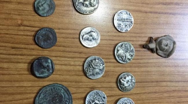 İzmir'in Bergama ilçesinde, polis ekiplerince durdurulan şüpheli araçtaki şahsın üzerinde 21 adet tarihi eser paralar ele geçirildi.