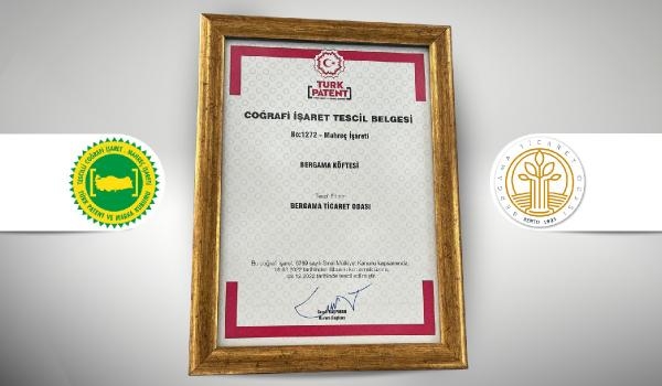 Bergama Ticaret Odası (BERTO), Türk Patent Enstitüsü'ne kuşaklar boyu süregelen bir lezzet olan Bergama köftesi için geçen 15 Mart'ta coğrafi işaret tescili için başvuru yaptı. Türk Patent Enstitüsü tarafından yapılan değerlendirmenin ardından Bergama'nın Kozak çam fıstığı, graniti ve parşömenin ardından 8 Aralık'ta köftesine de coğrafi işareti verildi. BERTO Başkanı Lütfi Kolat, Bergama Köftesi Coğrafi İşaret Tescil Belgesi'ni Ankara'da, Coğrafi İşaretler Dairesi Başkanı Hakan Kızıltepe'den teslim aldı.