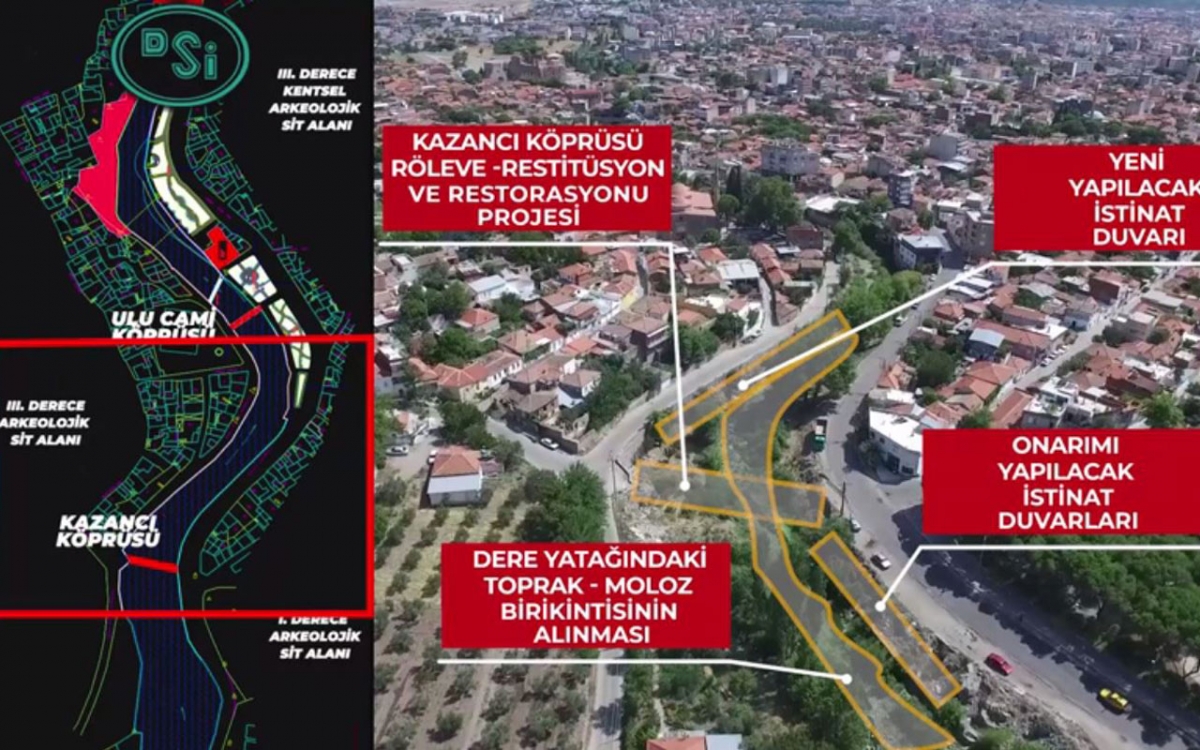 Proje kapsamında önce derenin ıslah edilmesi gerektiğini dile getiren Başkan Koştu, "Maalesef tarihi mahallelerimizin kanalizasyonu bu noktaya akıyordu. Bu proje aynı zamanda bir restorasyon projesi. Burada yapılan kazı çalışmaları tarihe de ışık tutacak. Öncelikle ıslah ardından da restorasyon çalışmalarının bitmesi gerekiyor. İkinci etapta da bu bölgenin Venedik'ten çok daha güzel olması için çalışacağız. Bergama olarak İzmir'in iki UNESCO şehrinden biriyiz. Kültür turizmi gelişmeye başladı. Biz de kültür turizminin gelişmesiyle daha fazla turist almaya başladık. Ancak bu kenti daha güzel, daha yaşanabilir, daha özenli bir bölge haline getirmemiz gerekiyor. Selinos Antik Kanalı da bu noktada bizim için çok önemli" ifadelerini kullandı.