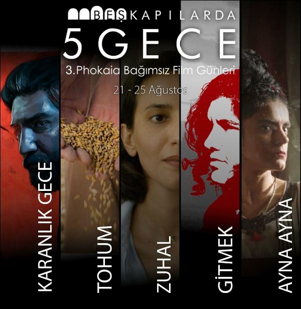 Foça Belediyesi'nin destekleri, Yönetmen Hüseyin Karabey ile sinema ve dizi oyuncusu Gizem Erman Soysaldı'nın sanat yönetmenliğini yaptığı 'Beşkapılarda 5 Geceö Phokaia Bağımsız Film Günleri', bu yıl da özel bir seçki ile sinemaseverlerle buluşacak. Film Günleri'nde bu yıl, yönetmen Özcan Alper'in imzasını taşıyan 'Karanlık Gece', Sevinç Baloğlu'nun çektiği belgesel türündeki 'Tohum', Nazlı Elif Durlu'nun yönettiği 'Zuhal', yönetmenliğini Hüseyin Karabey'in yaptığı 'Gitmek' ve Belmin Söylemez'in senaryosunu Haşmet Topaloğlu ile birlikte yazıp yönettiği 'Ayna Ayna' isimli filmler gösterilecek.