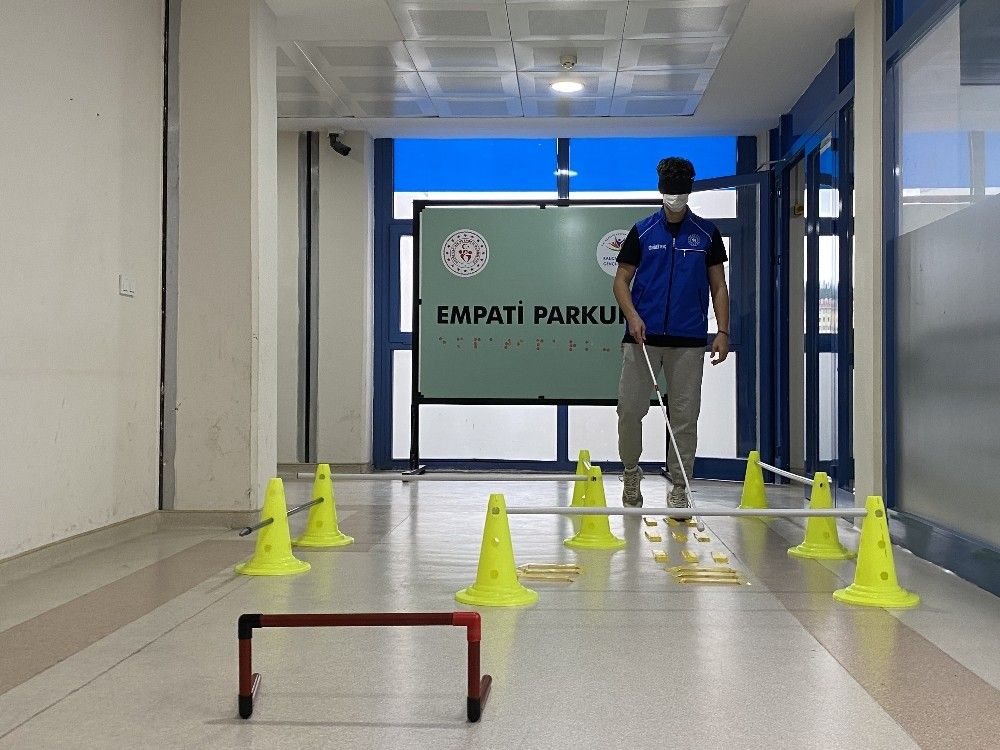 Düzce'de Gençlik ve Spor İl Müdürlüğü tarafından, farkındalık oluşturmak ve engelliler ile empati kurulabilmesi amacıyla 'Empati Parkuru' kuruldu. Kurulan parkurda, gözleri bağlanan katılımcılardan, beyaz baston ile parkurda yürümeleri istenerek, görme engelli bireylerin her an karşılaştığı sorunları yaşayarak anlamaları sağlandı. İlginin büyük olduğu Empati Parkuru'nda, katılımcılardan kimisi yürümekte zorluk çekerken kimisi de yere düştü.