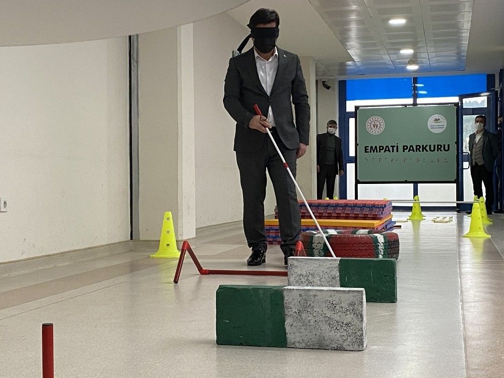Gençlik ve Spor İl Müdürü İsa Yazıcı, engelli vatandaşların sorunlarını çözüme kavuşturmak için her şeyden önce bu meseleye ilişkin toplumsal hassasiyetin güçlendirilmesi gerektiğine inandıklarını belirterek "7-14 Ocak Beyaz Baston Görme Engelliler Haftası münasebetiyle bizde hem farkındalık oluşturmak hem de Gençlik Merkezimizde özellikle gençlerimizin de bu empatiyi kurmalarını sağlamak adına empati parkurunu kurduk. Asıl maksadımız engelli bireylerimizin sosyal yaşamda hayatlarını kolaylaştırmak adına bu parkurların buna benzer uygulamaların yaygınlaşmasını sağlamak. Ayrıca uygulama alanında engelli olmayan bireylerin engelli olan vatandaşlara engel olmamalarını sağlamak. Çünkü sosyal hayatta biz engelli bireyler için özel yapılan alanlarda bazen onların hayatlarını zorlaştırmak adına farkındalıkları görmezden gelerek, onların hayatlarını zorlaştırıyoruz. Biz burada bu parkuru daha sabit daha bilimsel hale getirerek özellikle öğrencilerimizi bu parkurumuza davet edeceğiz. Bu parkurun bilinçlendirme seviyesini artırılmasına katkı sağlayacağını düşünüyoruz. Bu çalışmaları gençlik merkezimizin yapmış olması ayrıca anlamlı. Bu vesile ile buradan engelli bireylerimize hayatı kolaylaştırma adına onlara yardımcı olmak ve onlara engel olmamak adına parkuru kurduk Herkesi engelli bireylerin yaşamına katkı sunmaya hassas davranmaya, onlara daha fazla kolaylık sağlamaya ve şehrimizde onlara daha fazla yaşam imkanı sunmaya davet ediyorum" şeklinde konuştu.