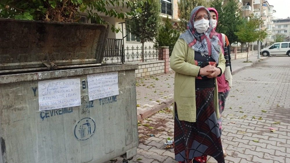Malatya'da yaşayan 50 yaşındaki Handan Benzer, engelli ve emekli maaşıyla biriktirdiği para ile aldığı 4 bileziğinin bulunduğu çantayı yanlışlıkla sokaktaki çöpe attı. Durumun farkına varan kadın hemen altınları attığı çöpün yanına gitti ancak 4 bilezikten 3'ünün alındığını gördü.