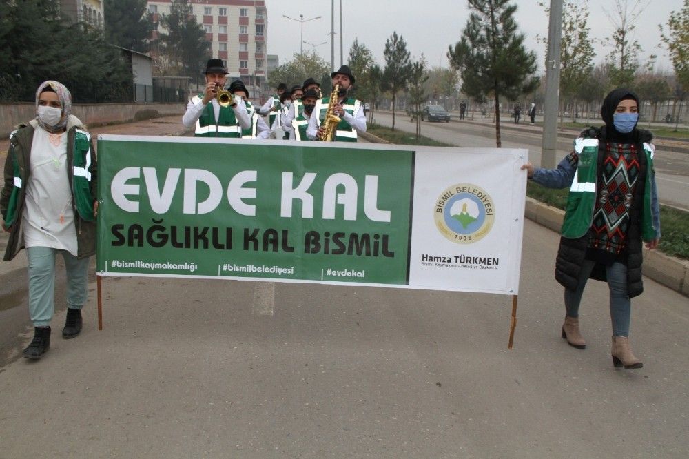 Diyarbakır'ın Bismil İlçe Belediyesi, korona virüs nedeniyle evlerinde kalan vatandaşlara moral vermek için ilçedeki mahalle ve sokakları gezerek konser etkinliği düzenledi