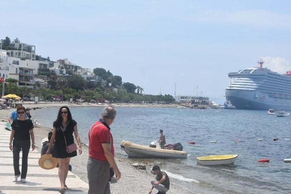 MUĞLA'nın Bodrum ilçesine yanaşan iki kruvaziyer ile toplam 1982 turist geldi. Turistlerden bazıları denize girdi, bazıları ise çarşıya gidip, alışveriş yaptı.