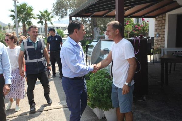 Gündoğan Mahallesi'nde ise liman bölgesi ve sahil şeridinde bulunan işletmelerde işletme sahipleri ve çalışanlarına 'hayırlı işler' dileğinde bulunan Başkan Aras, restoranlarda oturan vatandaşların, yerli ve yabancı tatilcileri selamladı. Başkan Aras'a Gündoğan ziyaretlerinde Mahalle Muhtarı Ali İneci, Başkan Yardımcısı İbrahim Akbaş ve ilgili birim müdürleri eşlik etti.