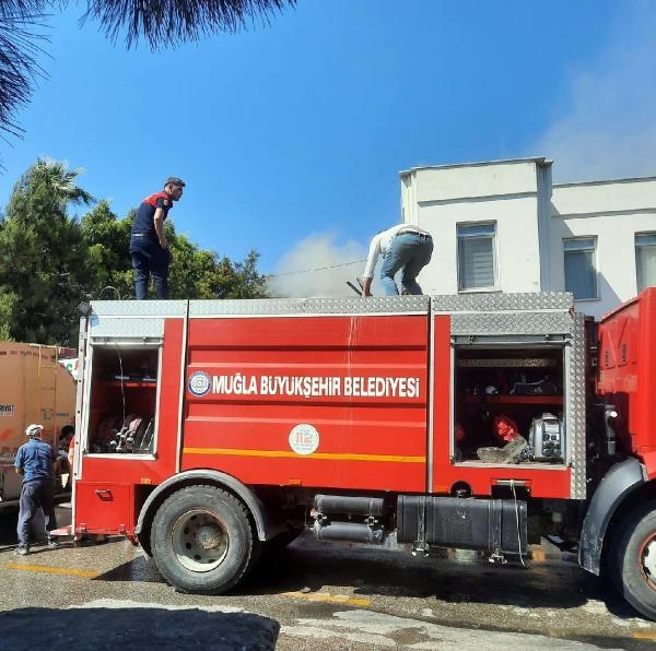 Gündoğan Mahallesi'ndeki birbirine bitişik, deniz malzemeleri, hediyelik eşya ve oyuncak satışı yapan 3 iş yerinde bugün saat 16.00 sıralarında yangın çıktı. Alevleri fark eden iş yeri sahipleri ve çevredekiler yangın tüpleriyle yangına müdahale etmeye çalıştı. İş yerlerinde bulunan eşyaların yanıcı özelliği nedeniyle hızla yayılan alevlere müdahalede güçlük çeken iş yeri sahipleri, durumu itfaiyeye bildirdi. İhbar üzerine bölgeye çok sayıda itfaiye aracı sevk edildi. Ekiplerin yoğun çabaları sonucu yangın 1 saatte söndürüldü. 3 iş yerinde büyük çapta hasar meydana gelirken, ilk belirlemelere göre yangının bir iş yerindeki buzdolabının elektrik aksamından çıktığı öne sürüldü. İtfaiye görevlileri çalışmalarını sürdürüyor. (DHA)