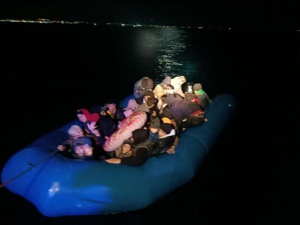 Sahil Güvenlik Komutanlığı'na bağlı ekipler, 29 Kasım'da Bodrum açıklarında lastik bot içerisinde bir grup kaçak göçmen olduğunu tespit etti. Bölgeye ulaşan ekipler, yasa dışı yollarla yurt dışına kaçmaya çalışan 45 göçmeni yakaladı. Kıyıya çıkarılan 45 kaçak göçmen, İl Göç İdaresi Müdürlüğü'ne teslim edildi. (DHA)