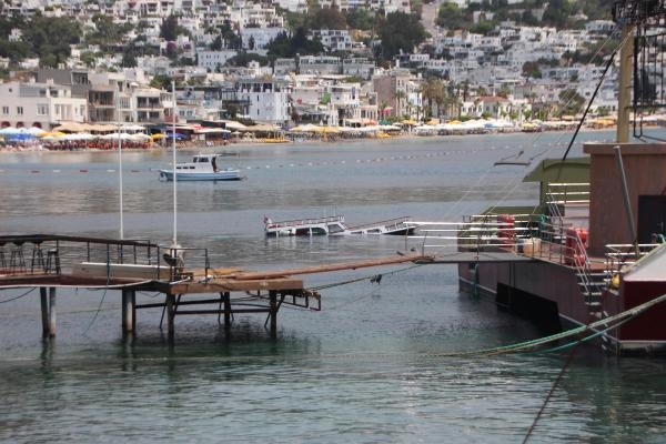 MUĞLA'nın Bodrum ilçesinde, su alan ahşap tekne battı. Teknede kimsenin olmadığı belirtilirken, sahibine ulaşılması için çalışma başlatıldı.