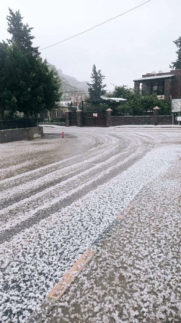 Meteoroloji 4'üncü Bölge Müdürlüğü Muğla ve çevresi için sağanak uyarısı yaptı. Bodrum'da öğle saatlerinden itibaren kuvvetli sağanak etkili oldu. Sağanak yerini yer yer doluya bıraktı. Dolu nedeniyle kentin birçok noktası beyaza büründü.