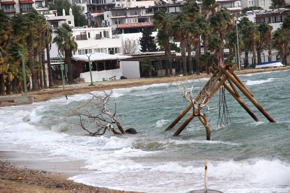 Gece başlayan ve güneydoğu yönünden esen fırtına Bodrum'da etkili olmaya başladı. Saatteki hızı zaman zaman 70 kilometreye kadar ulaşan fırtına nedeniyle vatandaşlar zor anlar yaşadı. Kıyı kesimlerini vuran fırtına nedeniyle Ortakent, Bitez, Gümbet ve Kumbahçe sahilinde dalgalar oluştu. Denizin mavisi yerini kahverengiye bırakması ise dikkatlerden kaçmadı.