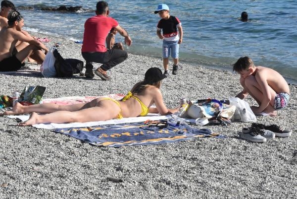MUĞLA'nın Bodrum ilçesinde, hava sıcaklığının artmasıyla birlikte yerli ve yabancı turistler denize girdi. Bazı vatandaşlar yürüyüş yaparken, kimileri ise plajda kitap okudu.