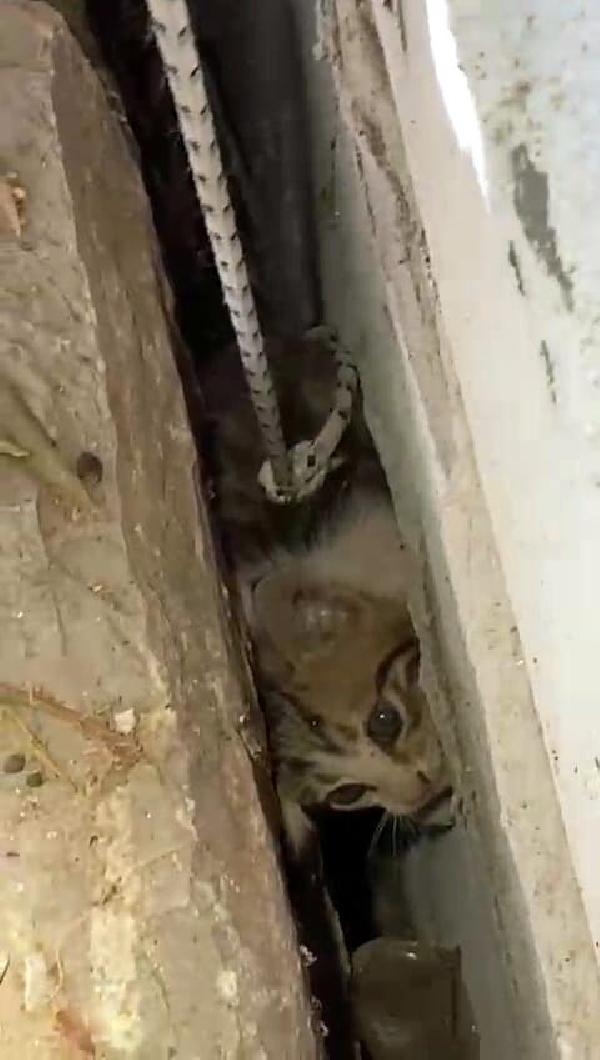 MUĞLA'nın Bodrum ilçesinde, duvar arasına sıkışan yavru kediyi itfaiye ekipleri kurtardı.