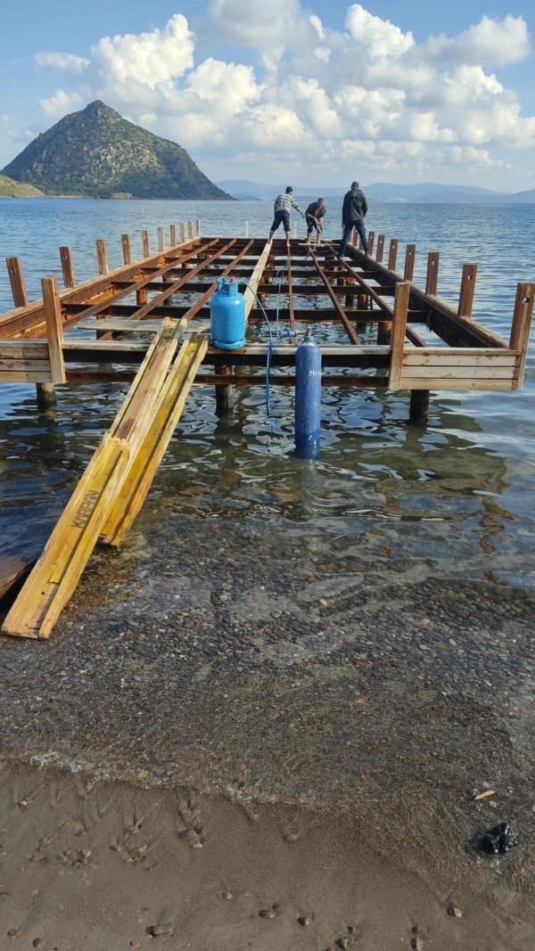 Yeni yılda da çalışmalarına aralıksız devam eden ekipler son olarak, Gündoğan ve Mazı da kaçak yapıların yıkımını gerçekleştirirken Akyarlar Mahallesi'nde de kaçak iskeleyi sökerek kıyıdan kaldırdı.