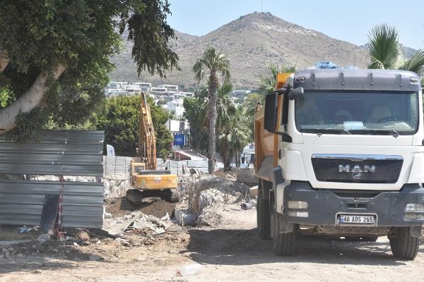 MUĞLA'nın Bodrum ilçesinde, yasak olmasına rağmen; belediyenin yürüttüğü Turgutreis İş Merkezi İnşaatı ve meydan düzenleme ile altyapı çalışmaları tepkilere neden oluyor.