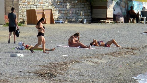 Dünyanın en önemli turizm merkezlerinden olan Bodrum'da sıcak havayı fırsat bilen yabancı turistler plajın yolunu tuttu. Hava sıcaklığının 22, deniz suyu sıcaklığının ise 22,2 derece ölçüldüğü kentte, yabancı turistler Kumbahçe Paşatarlası Plajı'nda denize girdi. Bazı turistler şezlongda güneşlenip kitap okurken, bazıları ise sohbet etmeyi tercih etti. Meteoroloji yetkilileri, hava sıcaklığının gelecek hafta da aynı seyrini koruması beklendiği bildirdi. (DHA)