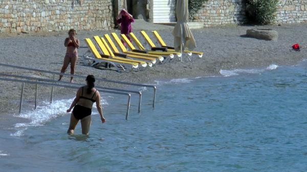 MUĞLA'nın Bodrum ilçesinde, kasım ayında sıcak ve güneşli havayı fırsat bilen yabancı turistler denize girdi.