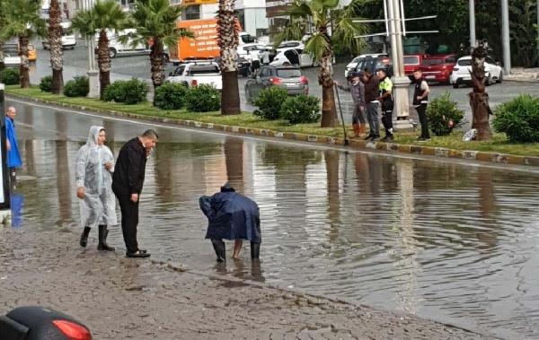 Bodrum'da kuvvetli sağanak; yollar göle döndü