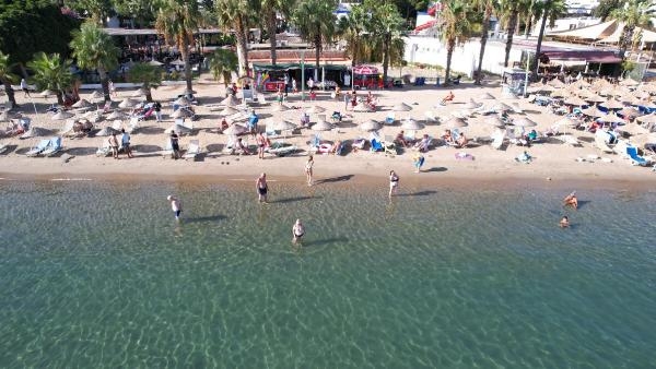 Dünyanın en önemli turizm destinasyonlarından biri olan Bodrum'da turist hareketliliği devam ediyor. 2022-2023 eğitim öğretim yılının yarın başlayacak olması nedeniyle plajlarda ve kent genelinde yerli turist azaldı, Bodrum'da plajlar yabancı turistlere kaldı. Başta Gümbet Plajı olmak üzere Kumbahçe, Ortakent, Bitez,Turgutreis, Gümüşlük, Yalıkavak ve Göltürkbükü sahillerinde yabancı turistler denizin ve güneşin keyfini sürdü. Hava sıcaklığının 31, deniz suyu sıcaklığının ise 26 derece ölçüldüğü kentte turistler keyifli dakikalar yaşadı. Bazı turistler bol bol denize girerken bazıları da şezlonglarında güneşlenip, kitap okuyarak vakit geçirmeyi tercih etti. (DHA)